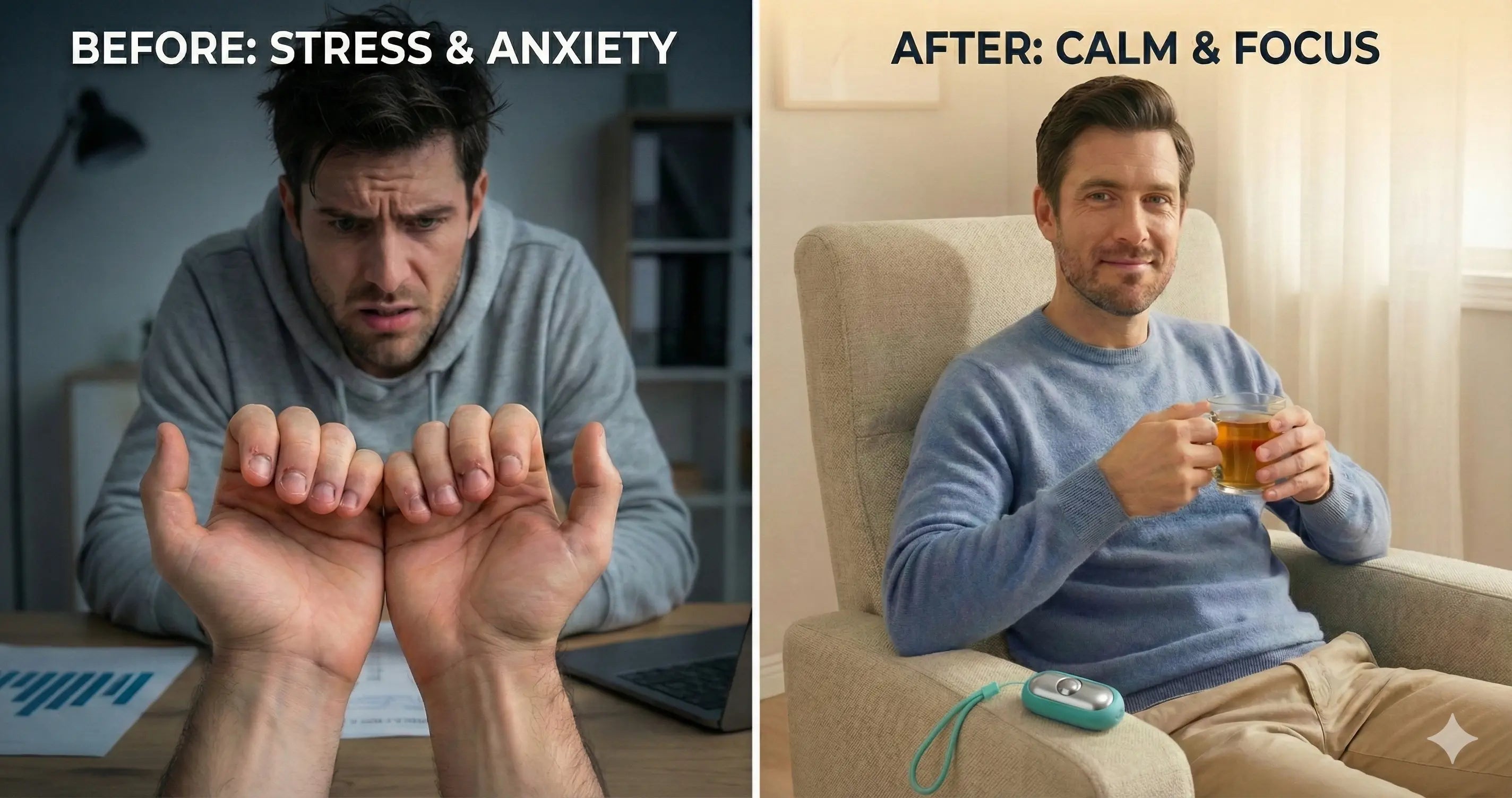 Imagine a day where stress doesn't control your hands. No more restless fidgeting, and no more biting your nails until they bleed. DreamPulse sends gentle micro-currents that signal your brain to lower cortisol levels instantly. It doesn't just mask the anxiety; it replaces the physical urge to self-soothe with destructive habits.